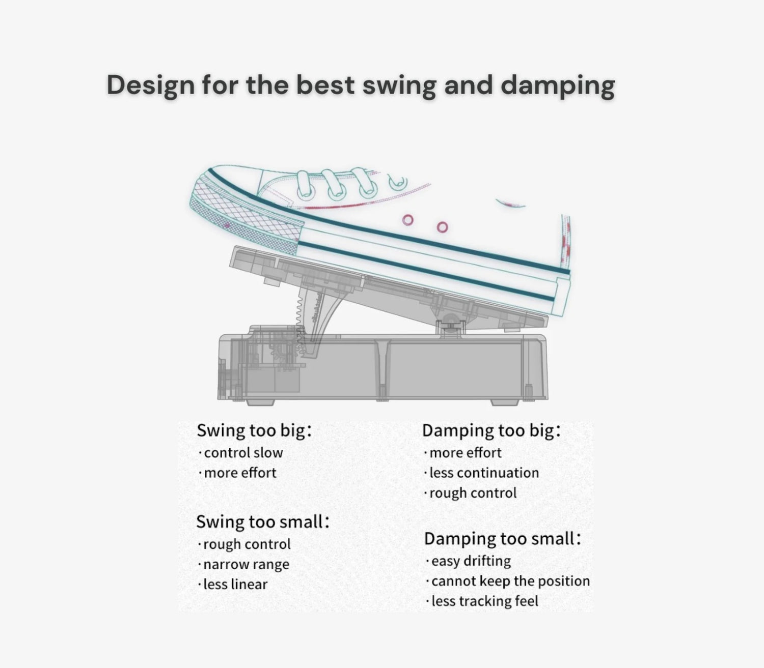 The angle of the pedal swing and the magnitude of damping are also key factors in achieving good control characteristics.