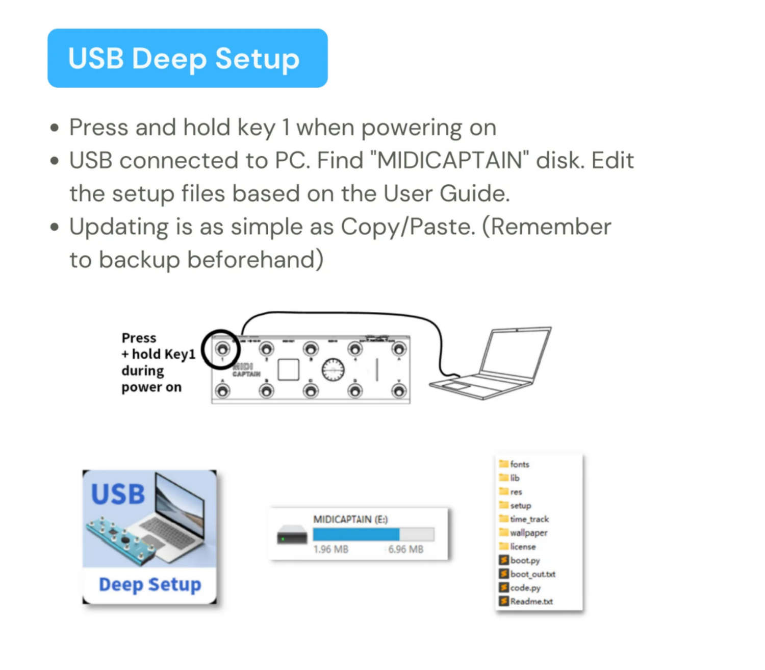 The setup can be fully customized by using the USB Deep Setup Mode. What's more, the device is subject to continually updating and increasing more functions. All you need do is to download the latest update package. In simple terms, updating the device firmware involves deleting the contents of this virtual USB drive (except for the "license" directory), and then copying all the files from the update package onto it. Afterward, you just need to restart the device to complete the update process.
