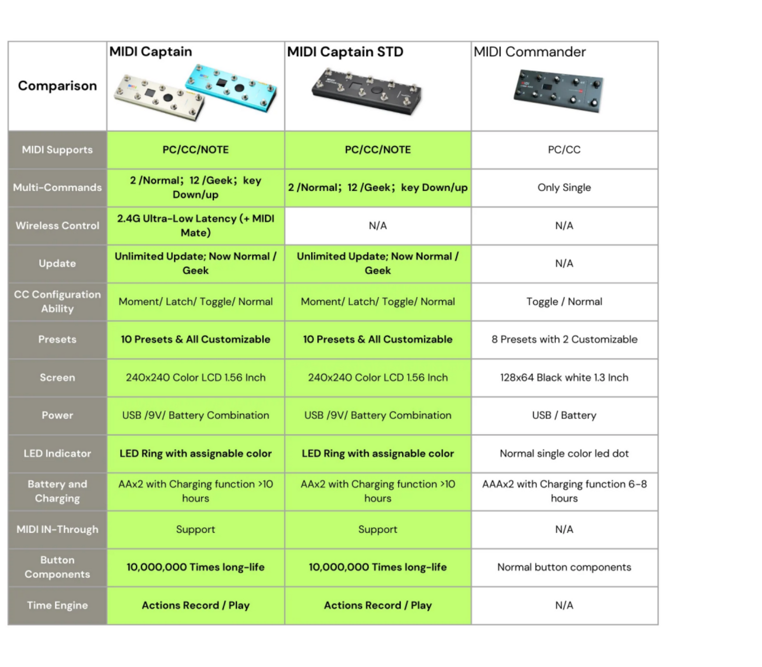 MIDI Captain STD is not just a MIDI controller, but a comprehensive musical performance assistant. With the ability to send Program Change (PC), Continual Change (CC), and Note commands, it empowers musicians with full functionality. Moreover, it offers fully customizable footswitches, and an innovative TIME Engine sequencer for recording and playback of footswitches actions. These features expand its applications to benefit a wide range of users, including guitarists and keyboardists of all skill levels.